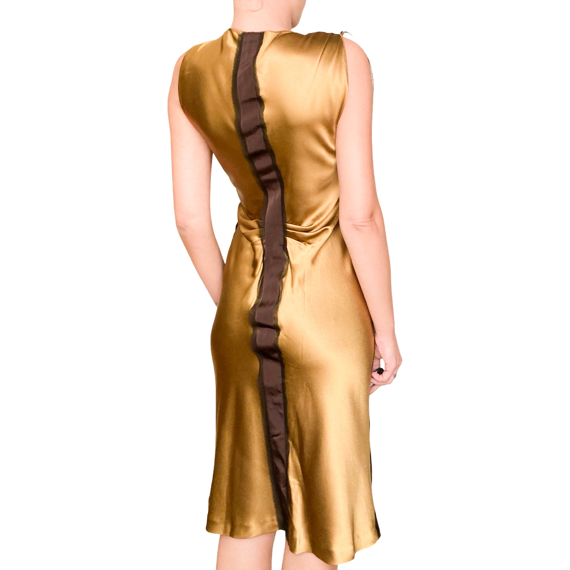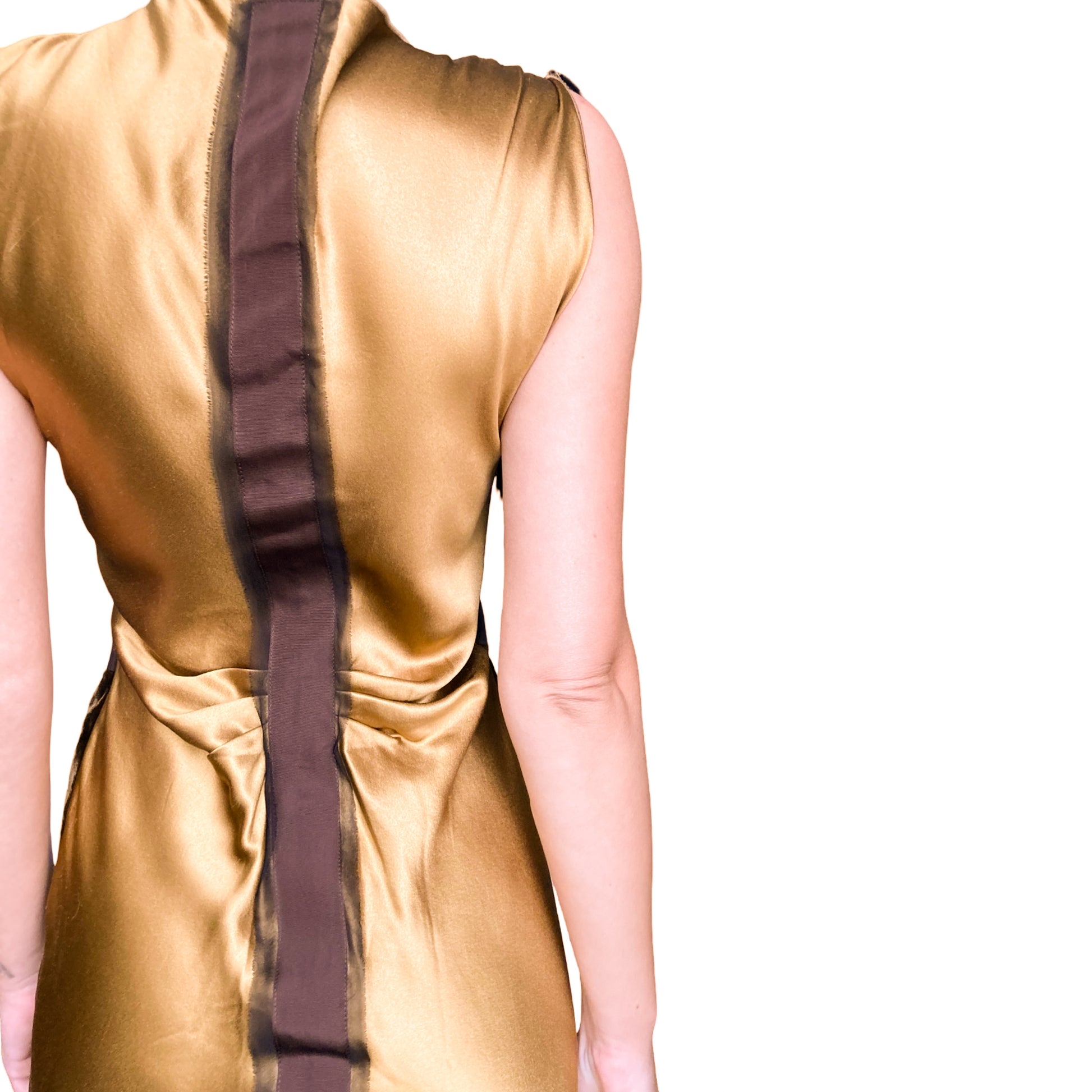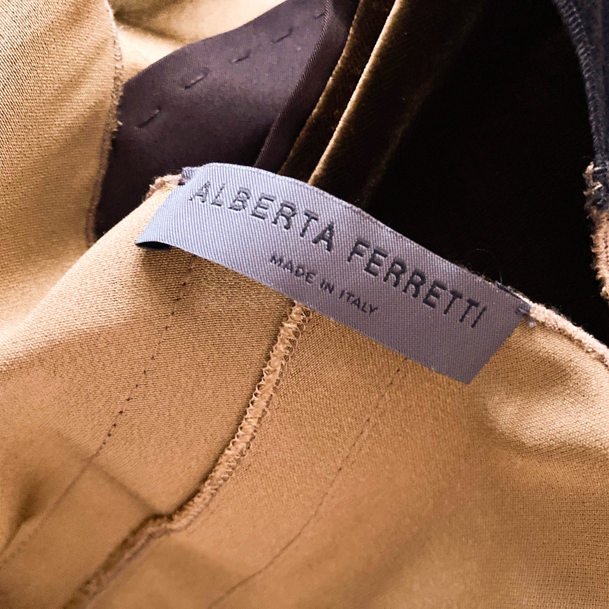 Super chic vintage Alberta Ferretti dress featuring a stunning blend of silk velvet and sheer details. This unique piece has a striking color-block design, accented by a delicate transparent shoulder detail and a back zipper closure. The back of this dress features liquid gold silk with a striking brown stripe along the spine, creating a captivating contrast. It's sooo hot ! An elegant nod to timeless Italian style.
