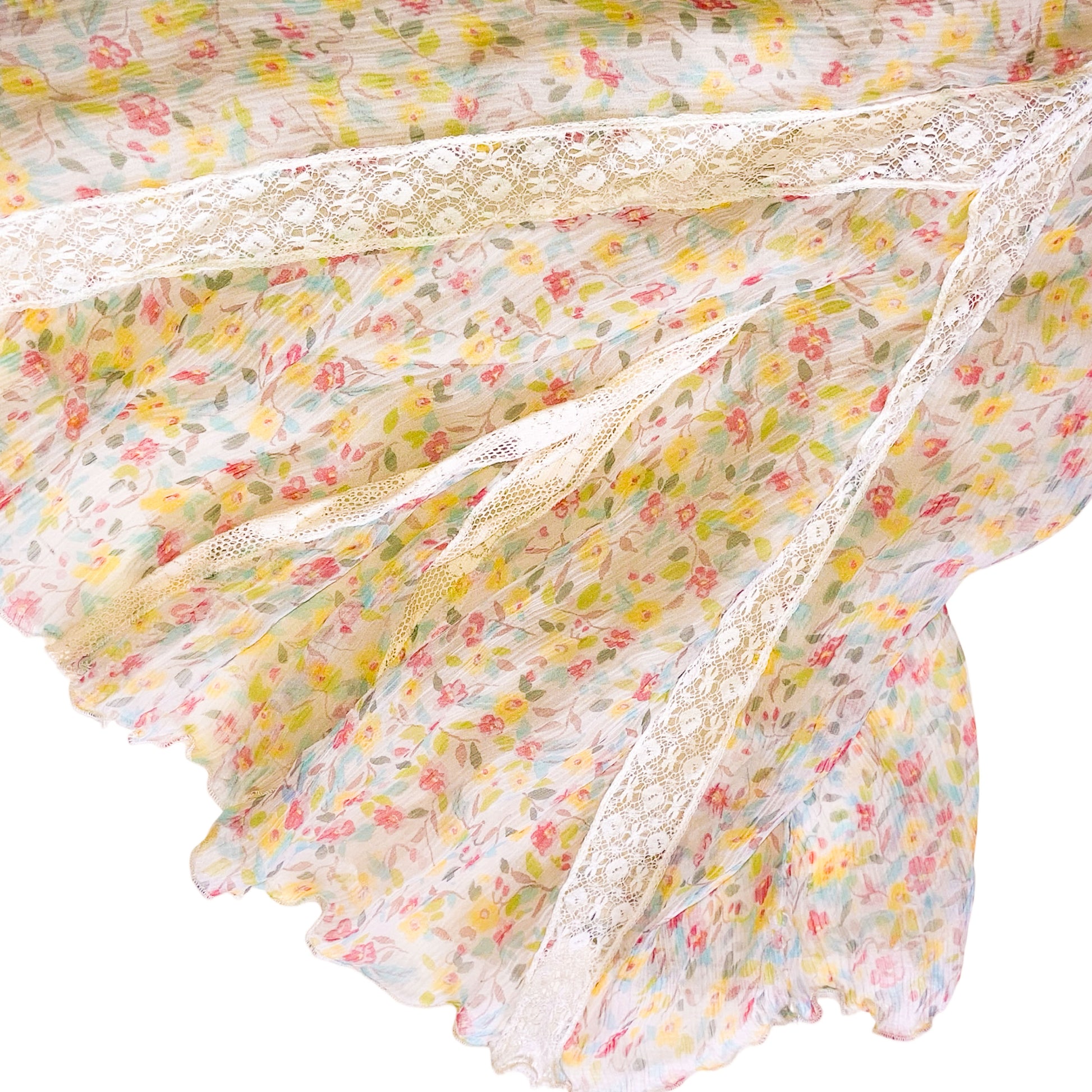 This Blumarine dress features a multicolor Liberty floral print, beautifully complemented by luxurious Italian lace details at the bottom. The dress is cut in a midi-length mermaid style and is fully lined for comfort. The most stunning feature is the hand-made 3D floral embroidery on the bodice & on one strap, adding a unique and exquisite touch. This brand-new marvel comes as dead stock with original tags, making it a rare and valuable find. Adjustable straps, & snap buttons line on the side.