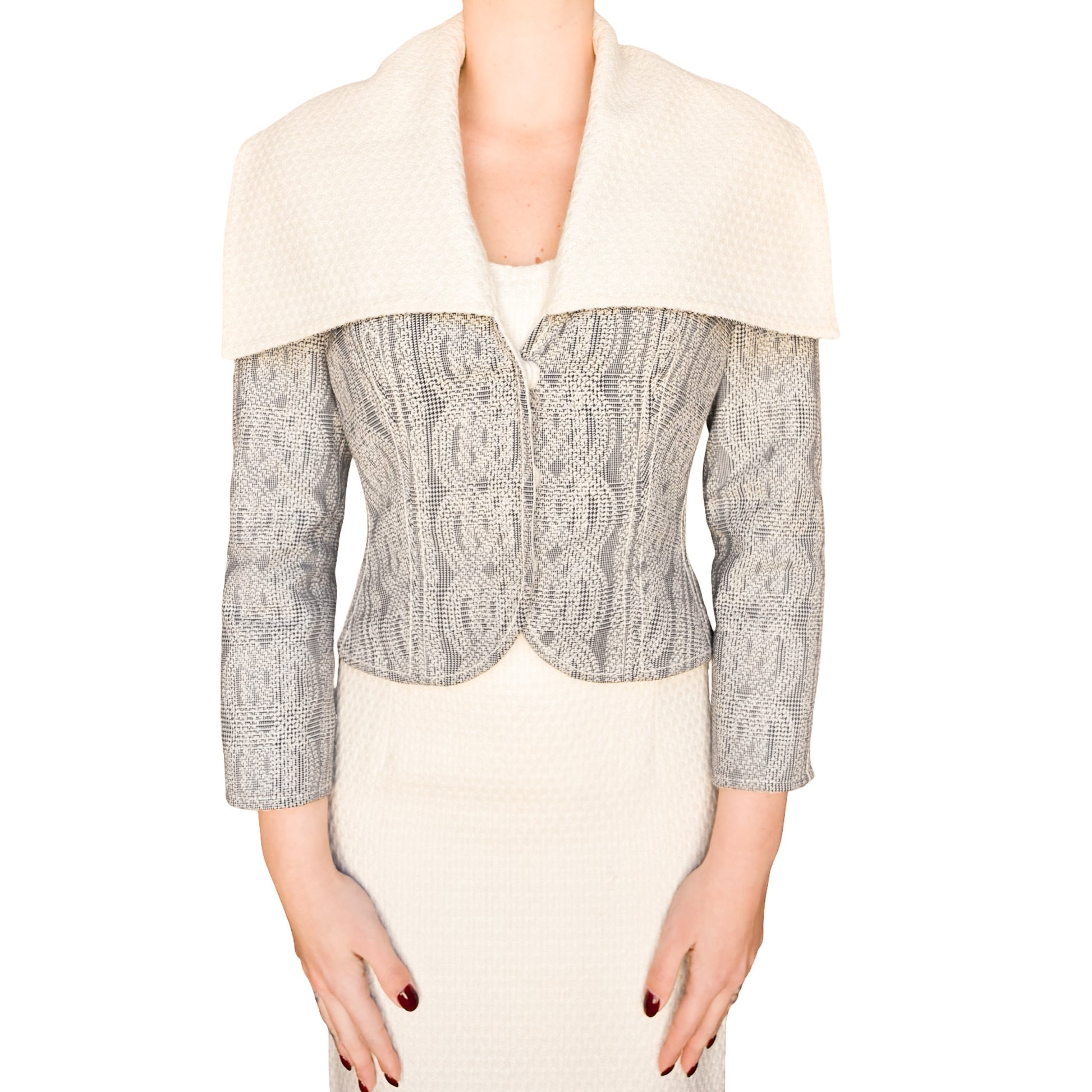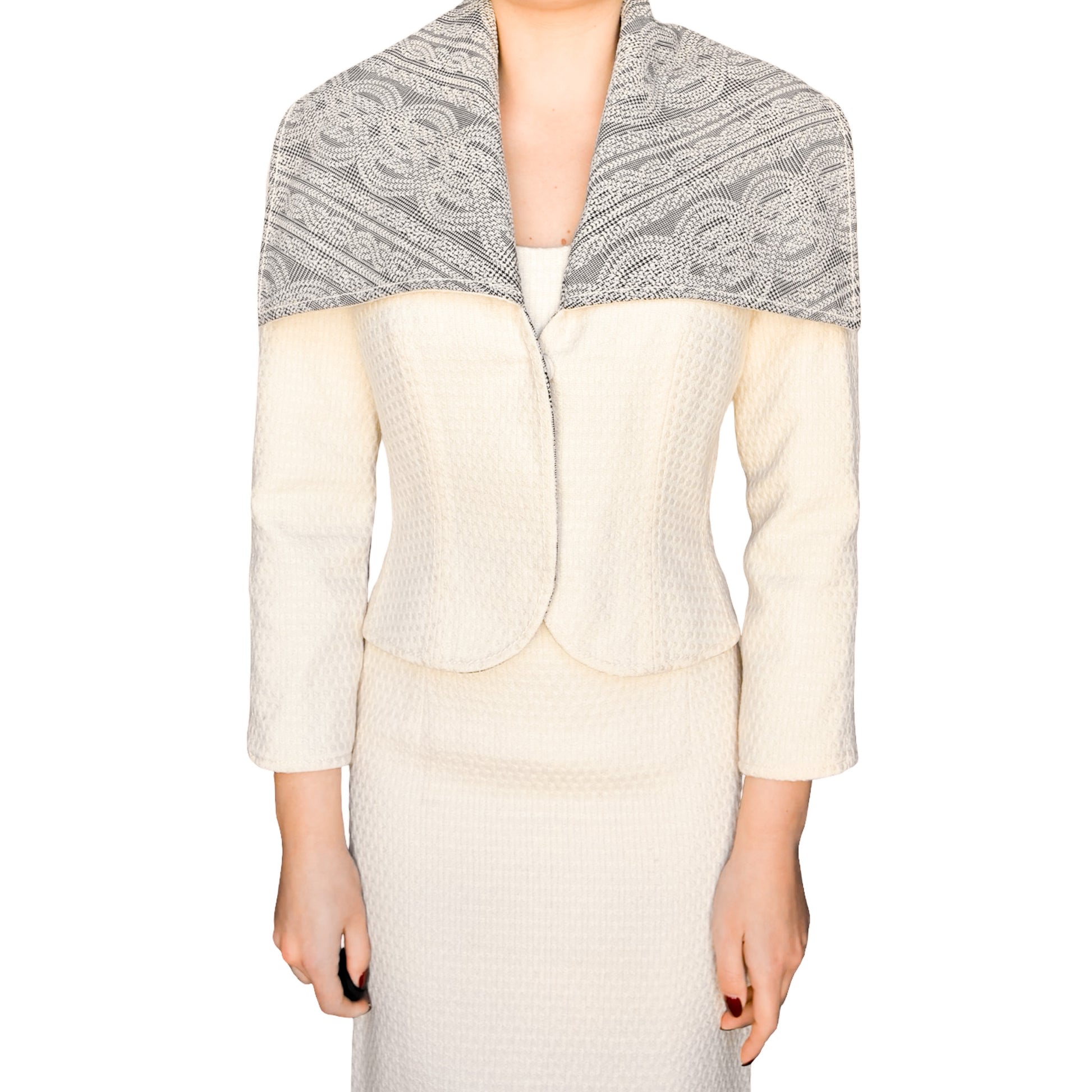 Ivory-cream base with grey woven pattern -