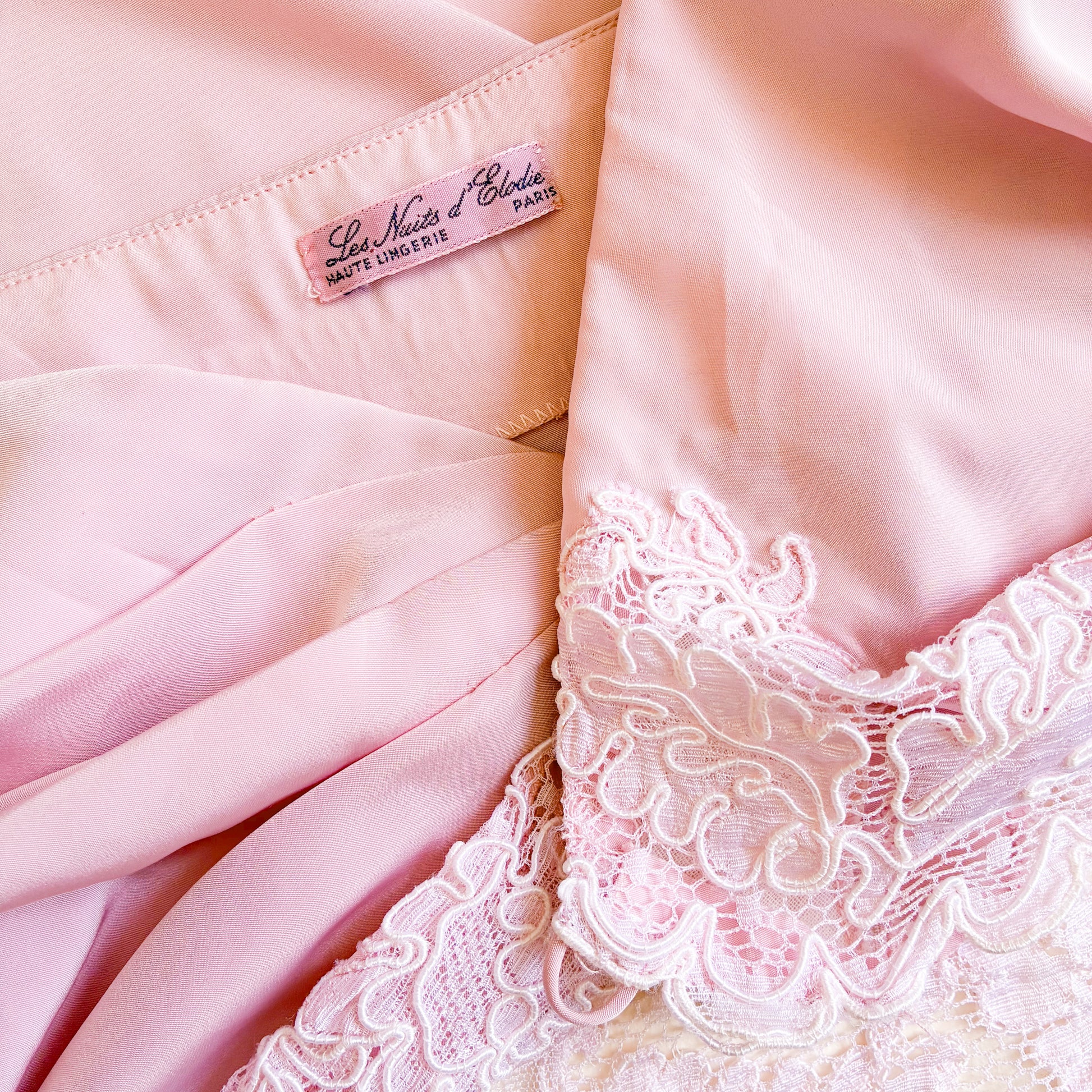 Draped silk wrap skirt in a delicate mauve tone, trimmed with antique lace. This haute lingerie piece is designed with a midi-mini silhouette, adjustable depending on how it is worn. The skirt fastens at the waist with a button and hidden hooks, and can be styled in multiple ways; by unfastening the button and leaving only the hooks, it transforms into a skirt with a high slit and fluid asymmetric panel. Its draped construction, refined finish, and couture-level craftsmanship make it an exceptionally rare piece, a true example of haute lingerie, the intimate equivalent of haute couture.