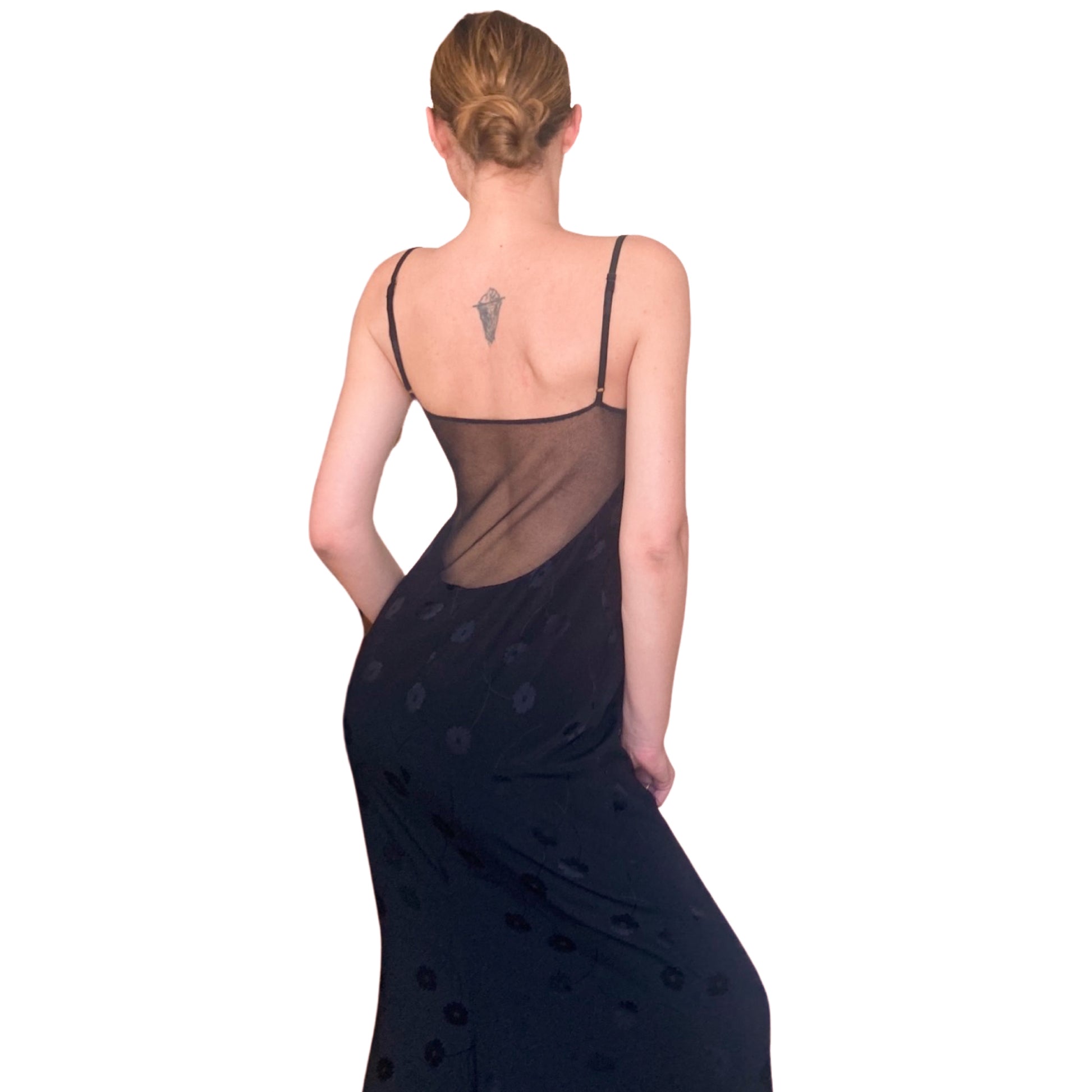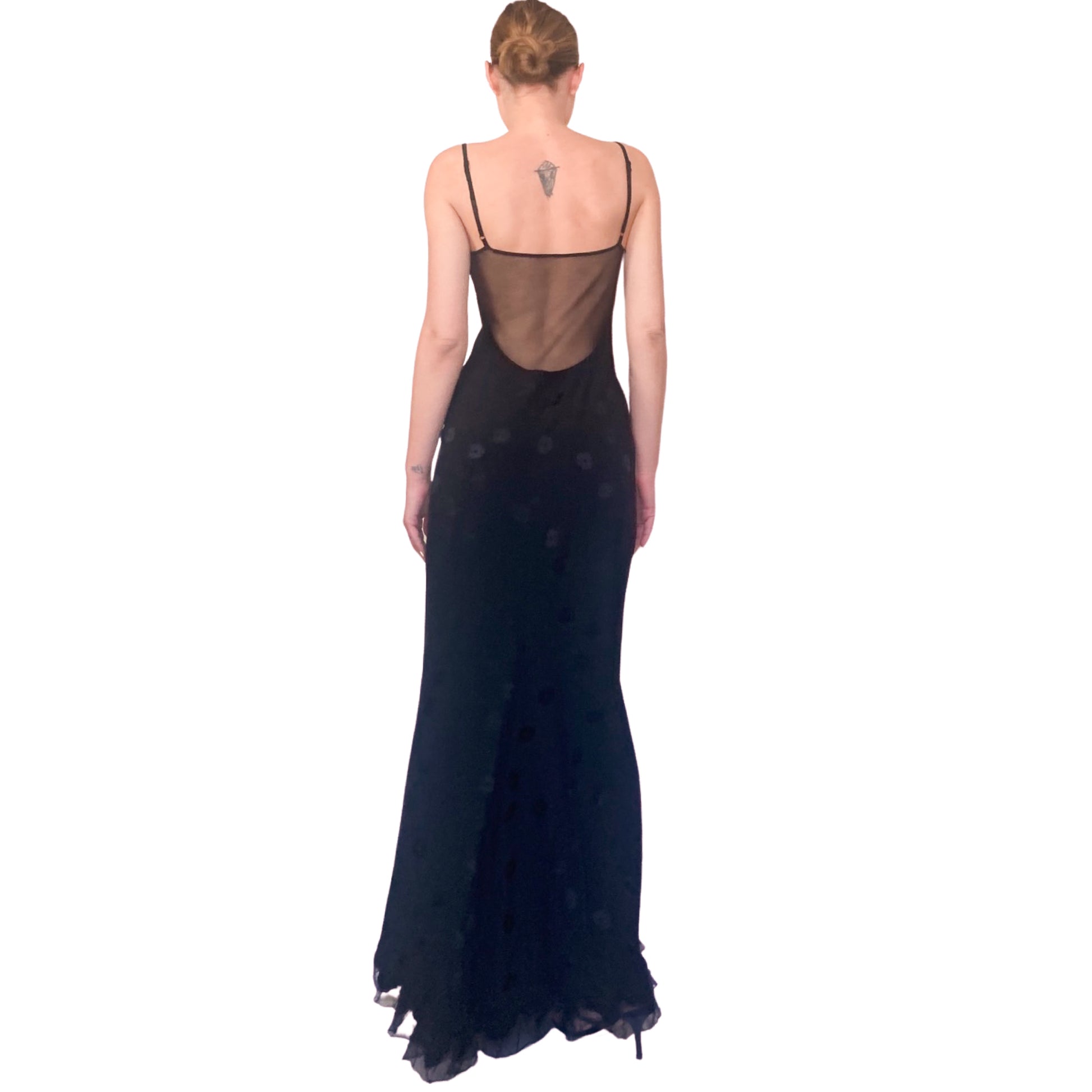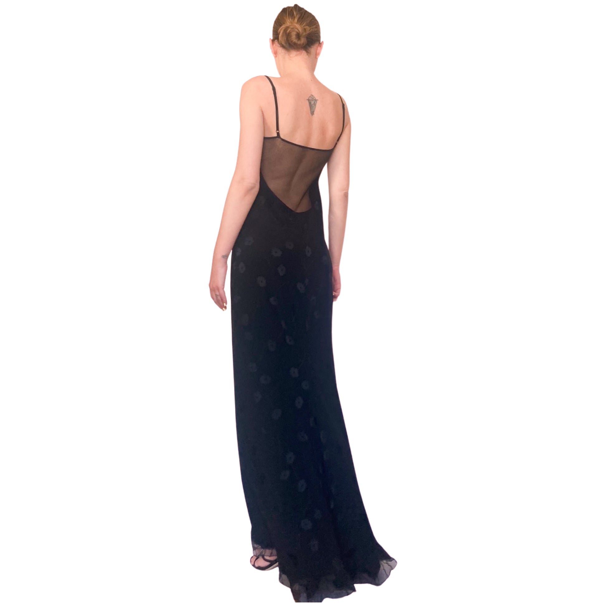 This Lolita Lempicka S/S 2000 runway gown is the perfect combination of elegance and femininity. It features a floor-length mermaid cut in luxurious silk brocard with beautiful floral designs, adjustable straps, and sheer mesh to cover the back. The delicate mesh lace and see through details add a unique touch to the design while adding a touch of romance.