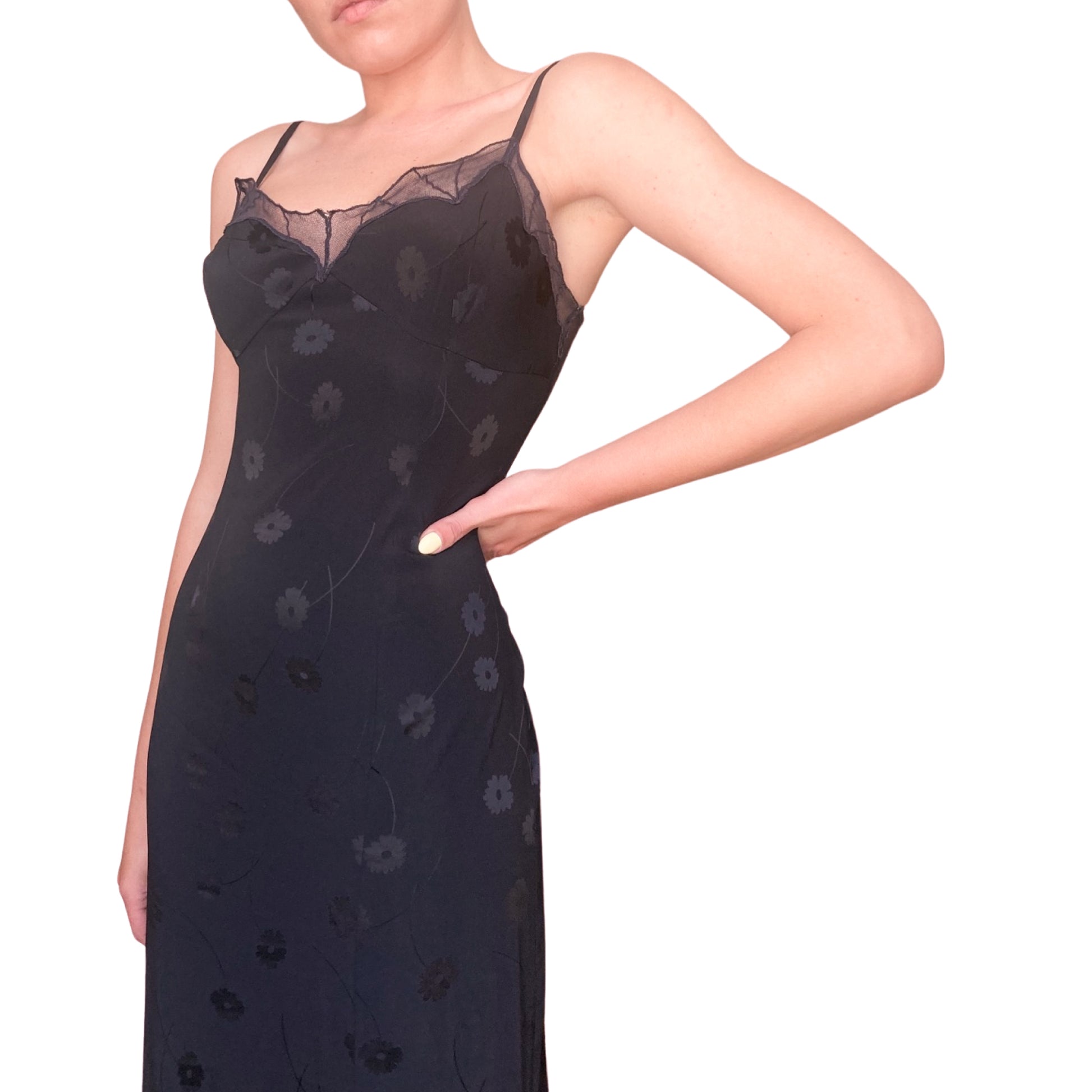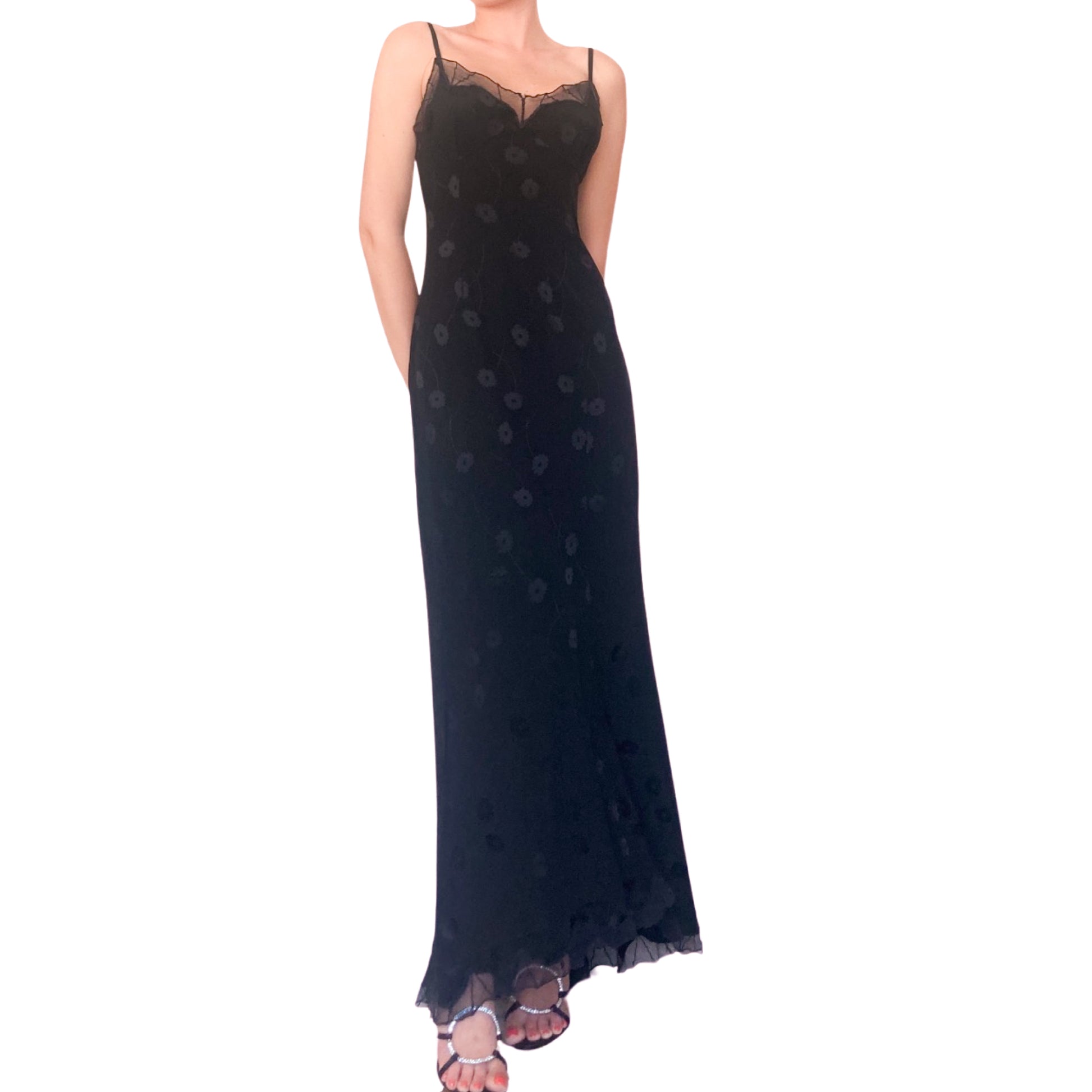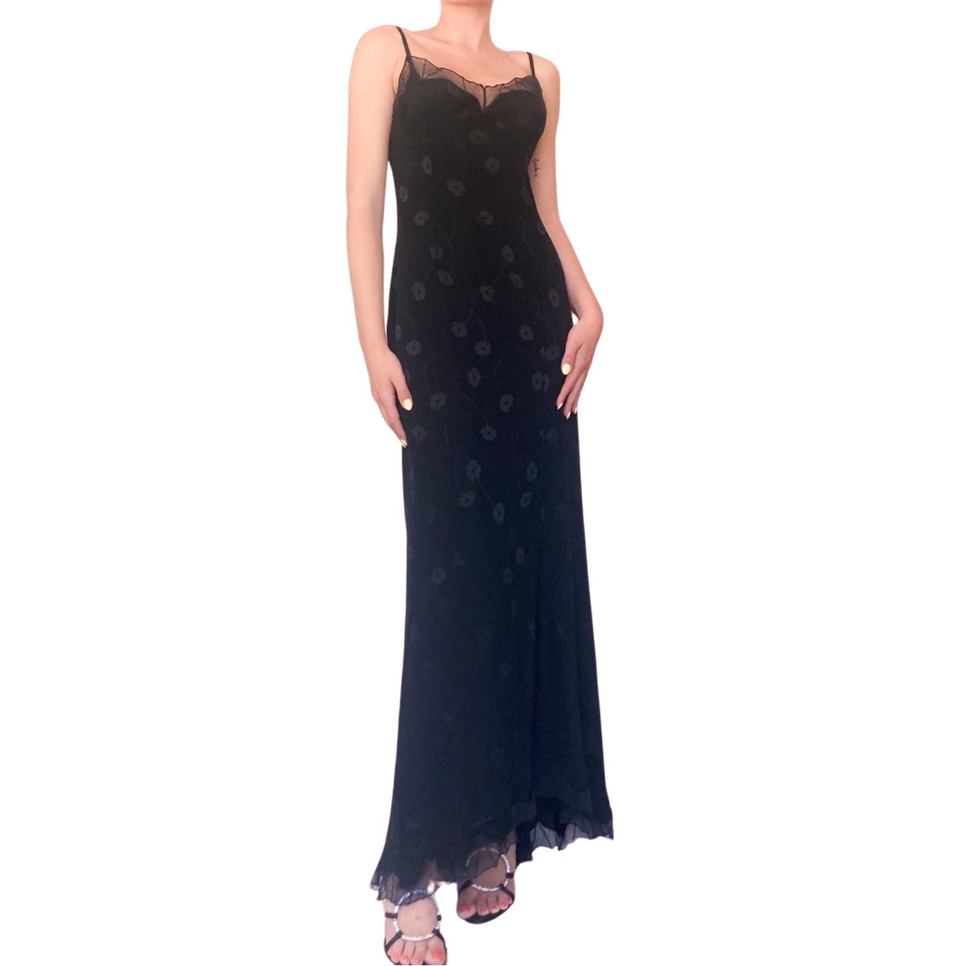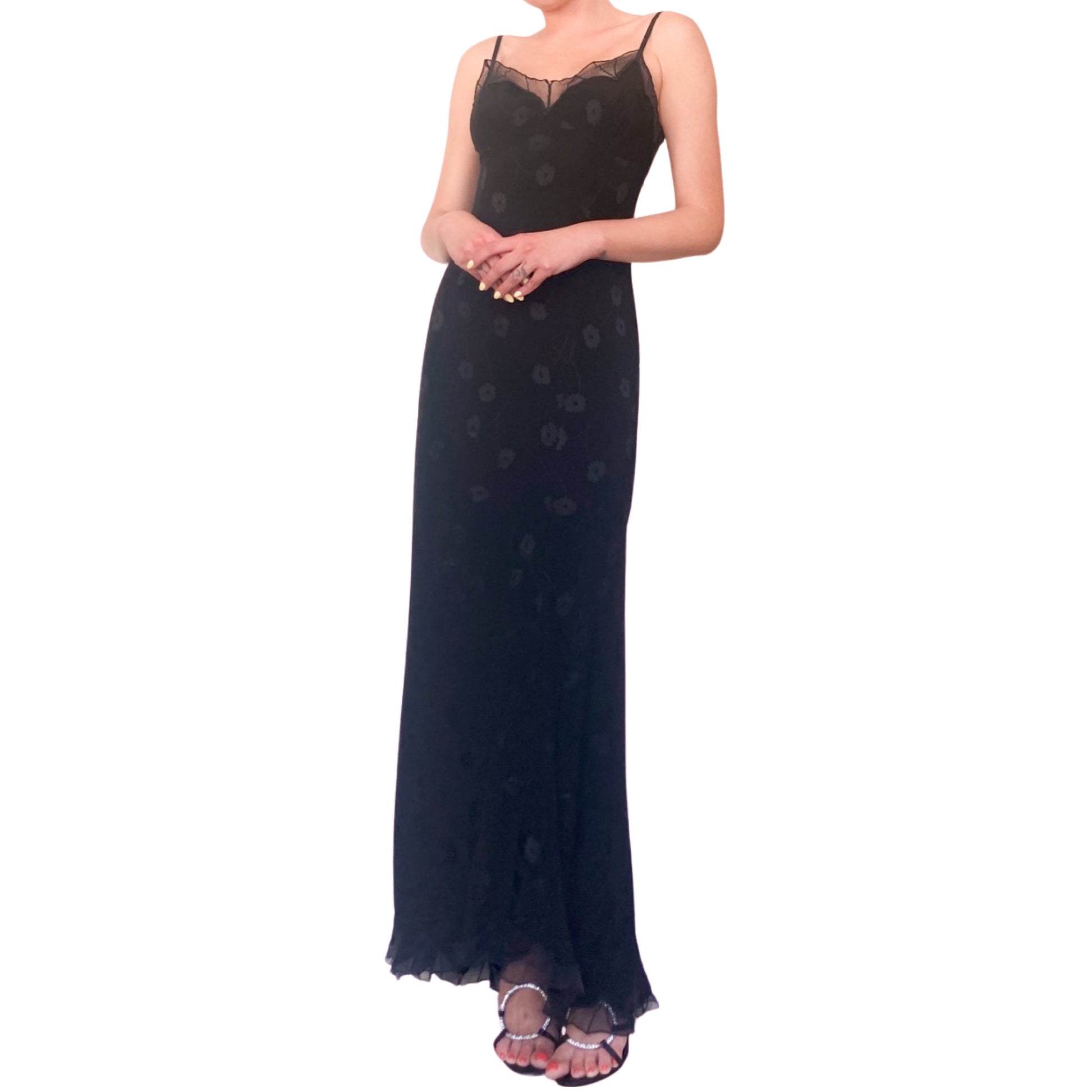 This Lolita Lempicka S/S 2000 runway gown is the perfect combination of elegance and femininity. It features a floor-length mermaid cut in luxurious silk brocard with beautiful floral designs, adjustable straps, and sheer mesh to cover the back. The delicate mesh lace and see through details add a unique touch to the design while adding a touch of romance.